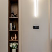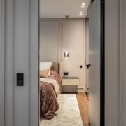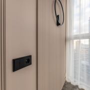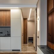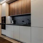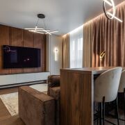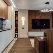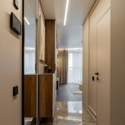 По СНБ площадь квартиры составляет 56.5 кв. м, а жилая площадь с кухонным оборудованием – 49.6 кв. м. На полу уложена паркетная доска Coswick и керамогранит. Все межкомнатные двери (Лацио). Вся мебель изготовлена под заказ по индивидуальному дизайн-проекту. Установлена надежная входная металлическая дверь усиленной конструкции, которая обеспечивает максимальную шумоизоляцию. Также имеется видеодомофон.
