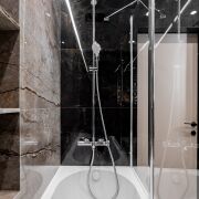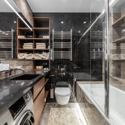 В ванной установлена сантехника Hansgrohe и Villeroy Boch, а также керамогранит. Кухня оборудована современной бытовой техникой Bosch. При продаже остается вся мебель и техника, что позволяет вам сразу же заселиться и наслаждаться комфортной жизнью.