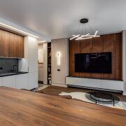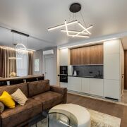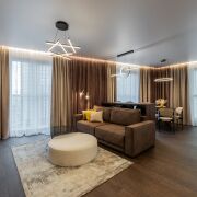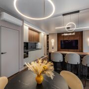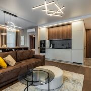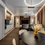 Современная планировка квартиры с просторной кухней-гостиной, объединенной в единое пространство, создает комфорт и функциональность. В квартире выполнен дизайнерский ремонт с использованием материалов высокого качества, все детали продуманы до мелочей.