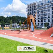 Двор без машин, с ландшафтным дизайном и современными детскими площадками. Есть лапомойка, колясочная, библиотека в дизайнерском лобби. Отходы утилизируются через подземную систему сбора мусора.