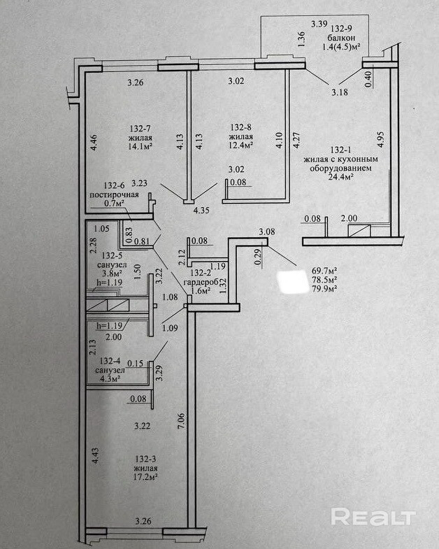 · Общая площадь: 79.9/69.7/24.4.