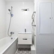 -Санузел совмещённый, полностью облицован современной плиткой: светлая цветовая гамма, хорошая сантехника и аккуратно спрятанные коммуникации.