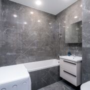 Оснащена всей необходимой бытовой техникой и мебелью: холодильник, электроплита, духовой шкаф, стиральная машина, телевизор и др.. Надёжная входная металлическая дверь. Полы – ламинат и плитка.