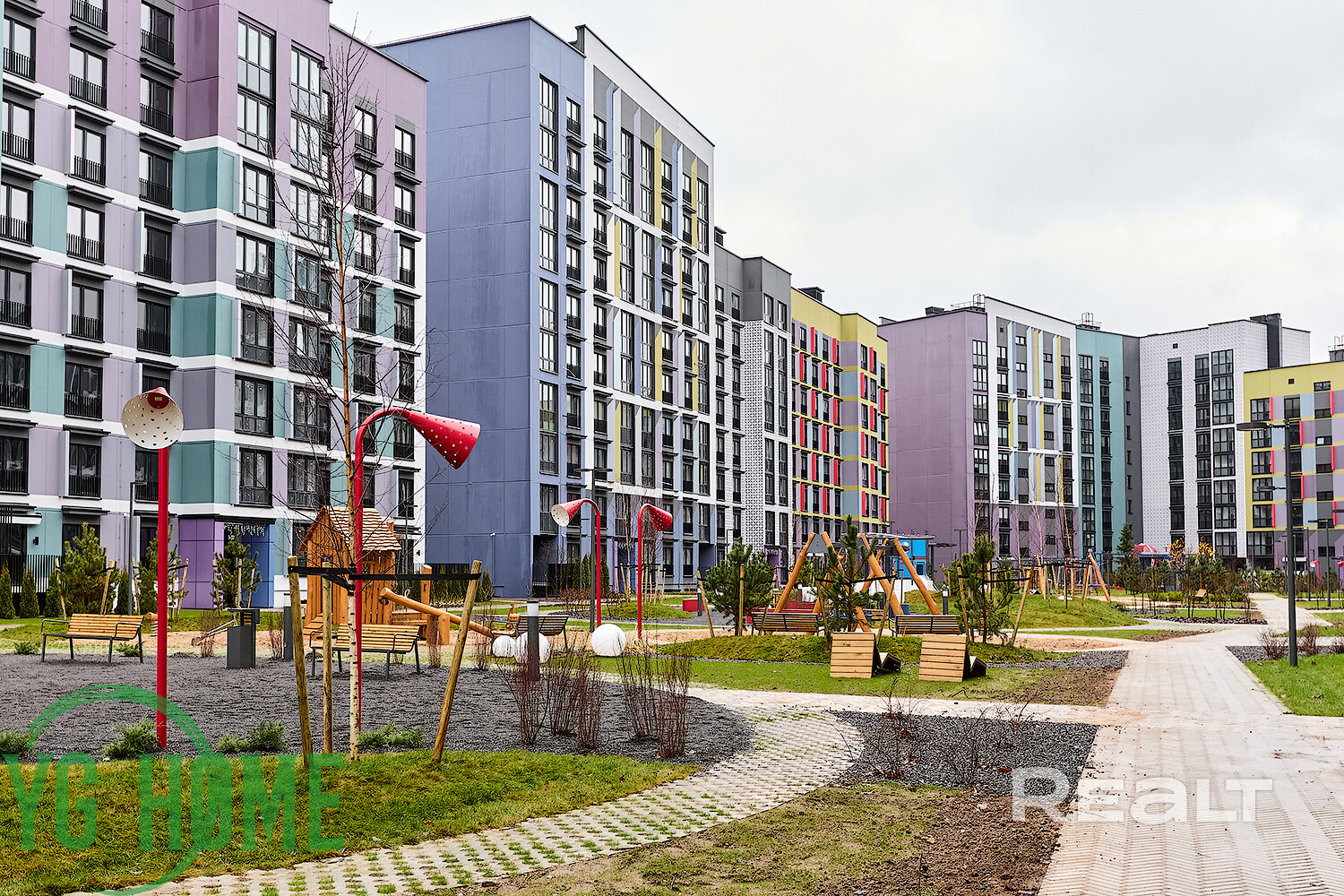 Двор состоит из пяти домов и имеет закрытую территорию. Во дворе расположены современные детские площадки, тренажерный зал, зоны барбекю, места отдыха для взрослых, вело парковка, и множество зелени.