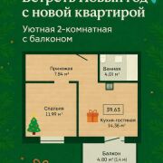 - Формат: евродвушка - просторная кухня-гостиная + комната;