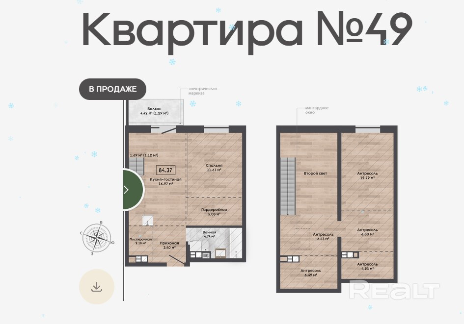 5 168 р.≈ 1 745 $ за м²
