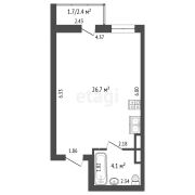 Жилая площадь - 26,7 м2.