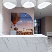 Здесь есть ресепшн с местом для консьержа, за которым вы увидите живописное панно "Парка Гёреме". Рядом со стойкой консьержа расположены стеллажи для книг, место отдыха для гостей. Есть санитарная комната.