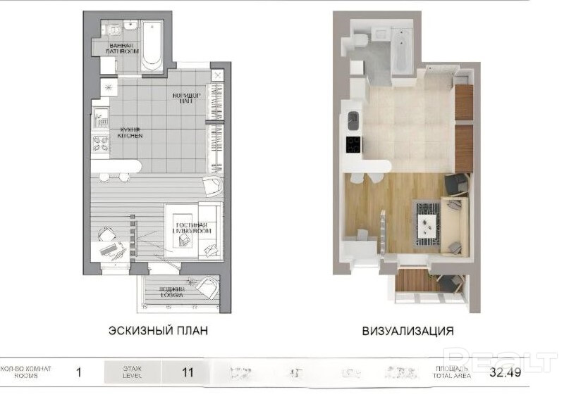 Общая площадь по СНБ - 32,5 м2.