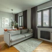 В квартире выполнен дизайнерский ремонт с использованием высококачественных материалов отделки и современных технологий.