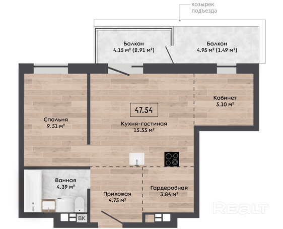 - Формат: евродвушка - просторная кухня-гостиная + комната;