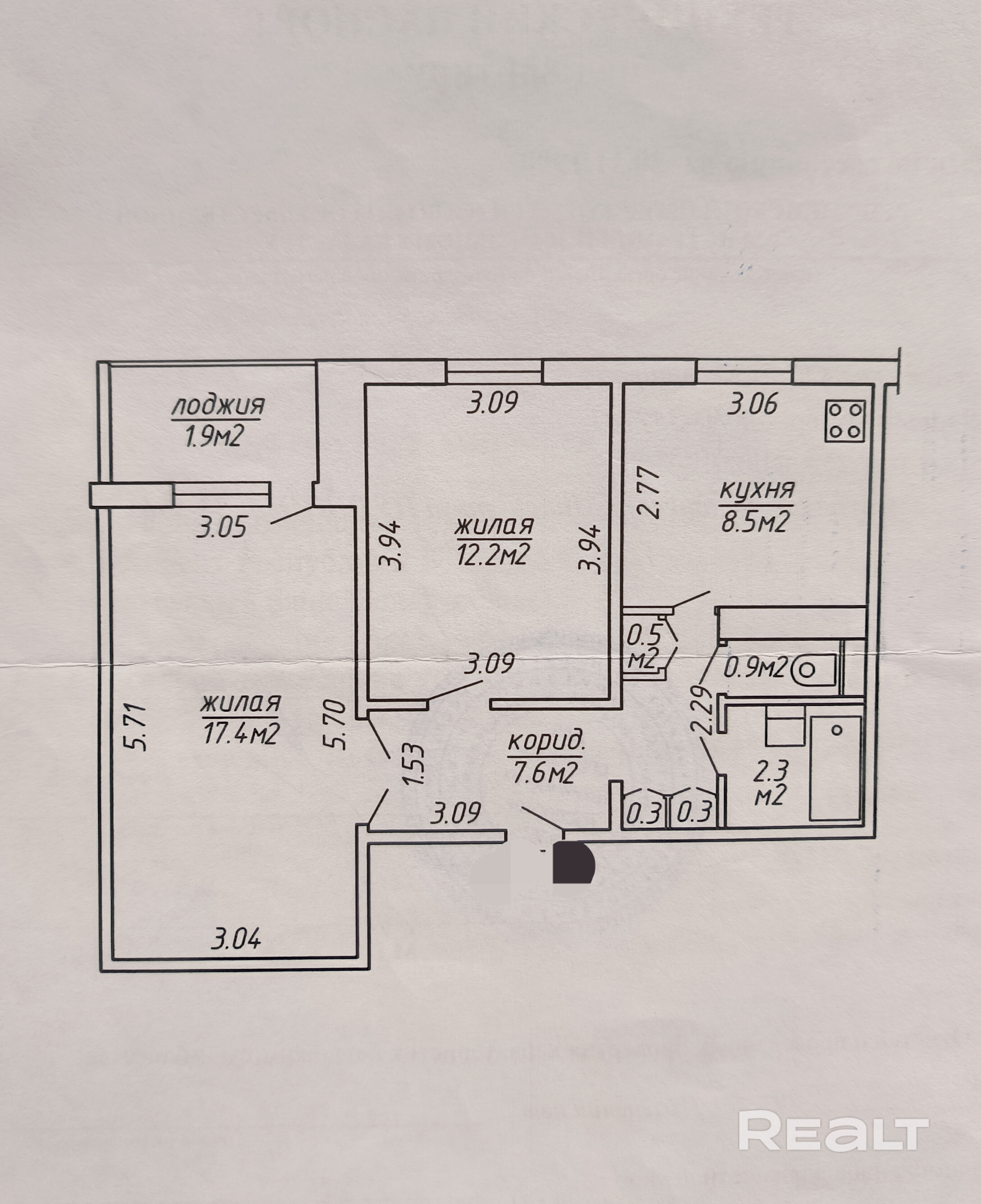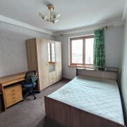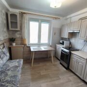 Окна – стеклопакеты, выходят на боковую часть дома (не на проспект). Двойная входная дверь. На входе шкаф-купе. На кухне (8,5 м.кв.) установлен кухонный гарнитур, газовая плита, вытяжка, холодильник.