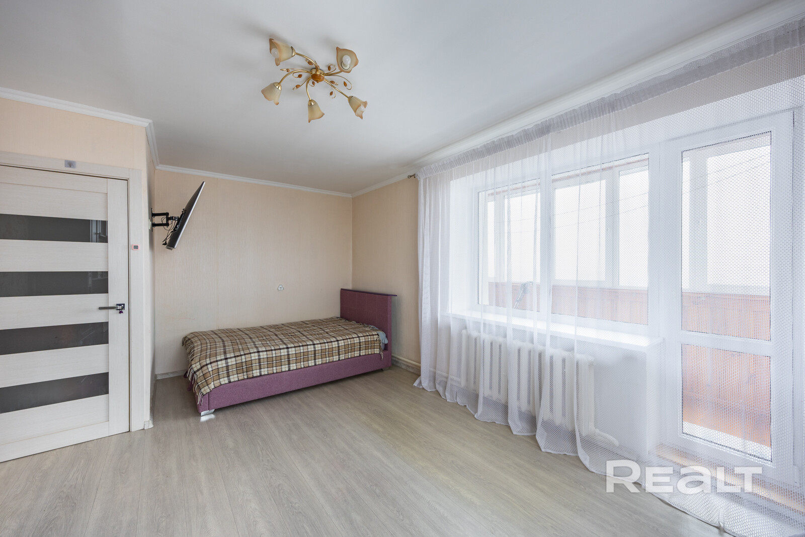 Квартира угловая, окна выходят на две стороны — много естественного света в течение всего дня. Комната с двумя окнами и выходом на большую лоджию, остеклённую многокамерными стеклопакетами по всей длине комнаты. Из окон открывается приятный вид, квартира хорошо проветривается и комфортна в любое время года. Дом тёплый: зимой сохраняет тепло, летом — прохладу.