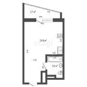 Площадь по СНБ 26,2 м2. Общая площадь: 23,6 м2.