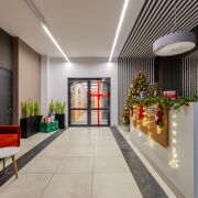 В фойе дома предусмотрены места отдыха для ваших гостей. Далее – лифтовый холл с тремя малошумными скоростными лифтами, один из лифтов панорамный. Поднимаясь, вы каждый раз будете любоваться красотой окружающей территории. В доме на первом этаже запроектировано шесть помещений, в которых уже расположены салон красоты и центр развития ребёнка. Дом «Брюссель» - это стильная высотка, с большим применением стекла на фасаде. Территория около дома уже оборудована детскими и спортивными площадками. В доме два выхода – в тихий зеленый двор и на улицу, к стоянкам автомобилей. Внутри квартала безопасная территория с аллеями для прогулок без транзитного движения транспорта. По периметру квартала предусмотрены удобные парковочные места.