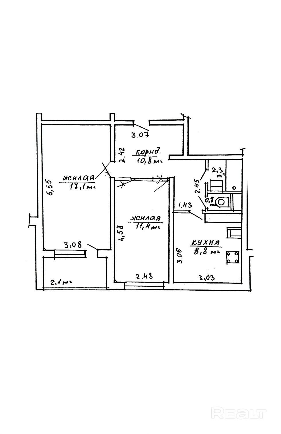 - Удобная планировка: Достаточно большая кухня - мечта хозяйки.