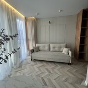 Уютная и красивая квартира, с выделенным пространством для спальни. Оснащена техникой и мебелью. Дом заселен на 90 %. Весь этаж жилой. Прекрасные соседи. Большой паркинг в 5 минутах от дома. Агентам не звонить. Реальным покупателям напишем прямые контакты.