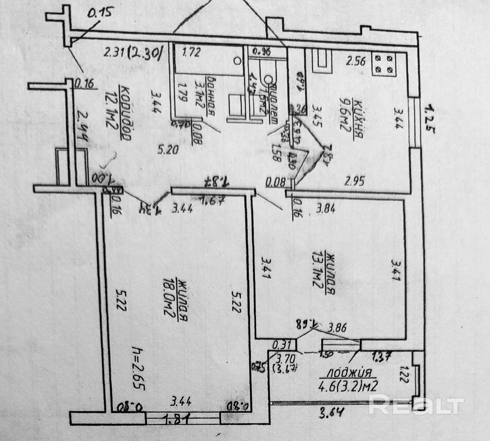 Площадь по СНБ - 60,6 м2, общая - 57,4 м2, кухня - 9,6 м2. Высота потолков 2,65 м. создает ощущение простора и света. Окна выходят на Восток.