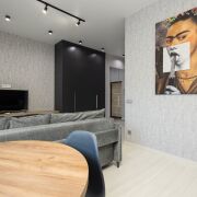 Современная однокомнатная квартира-студия с отличным евроремонтом в доме повышенной комфортности полностью мебелирована.