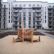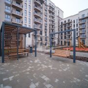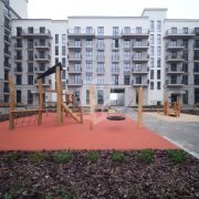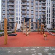 • современная, очень продуманная детская площадка с безопасным покрытием