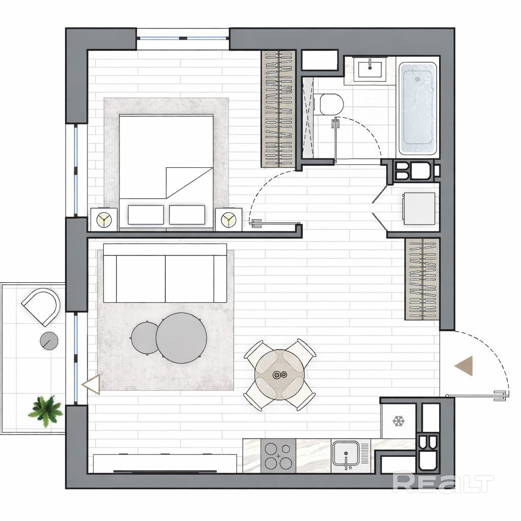 Квартира правильной формы с одной из самых востребованных и функциональных планировок — евродвушка на три окна, наполненная светом и ощущением простора.