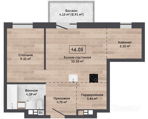 - Формат: евродвушка - просторная кухня-гостиная + комната;