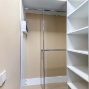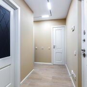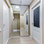 - В прихожей 4,9 м2 разместилась вместительная и уютная гардеробная, в которой можно разместить всё необходимое.