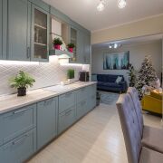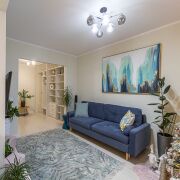 В квартире сделан качественный ремонт, напольное покрытие-ламинат, стены оклеены обоями, потолок выровнен и окрашен. Большие, панорамные окна.