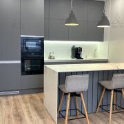 Сердце квартиры: Просторная кухня-гостиная с островом. В острове предусмотрены дополнительные места хранения.