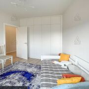Выполнен качественный ремонт. Квартира полностью готова к проживанию: установлен кондиционер, встроенная техника (СВЧ, духовой шкаф, посудомоечная машина 60 см). Много мест хранения: встроенные шкафы в спальне, детской и полностью оборудованная гардеробная.