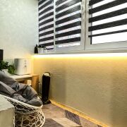 • Двукамерные стеклопакеты. Лоджия утеплена и застеклена (выполнена подсветка);