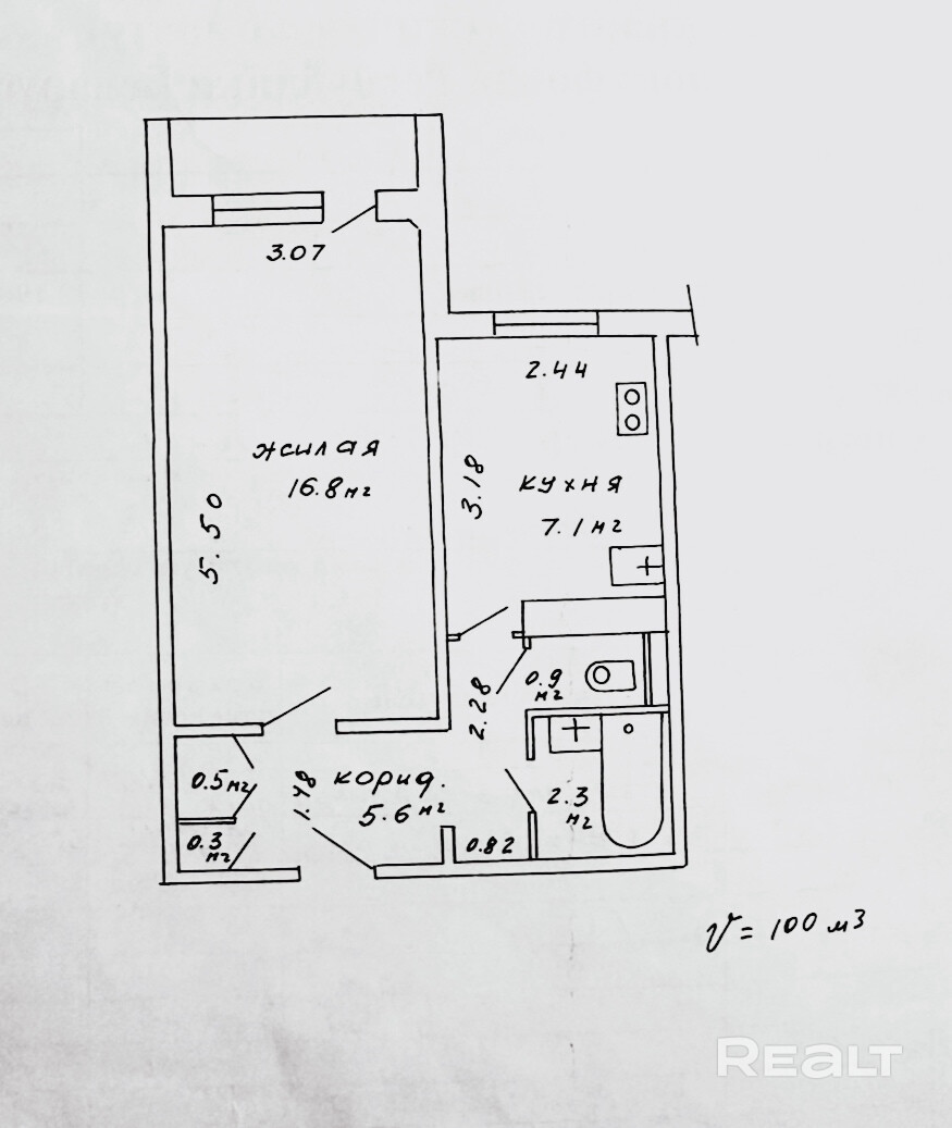 - Площадь кухни