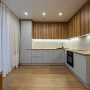 -Кухня оснащена бытовой техникой: варочная панель, духовой шкаф, вытяжка и встроенный холодильник;
