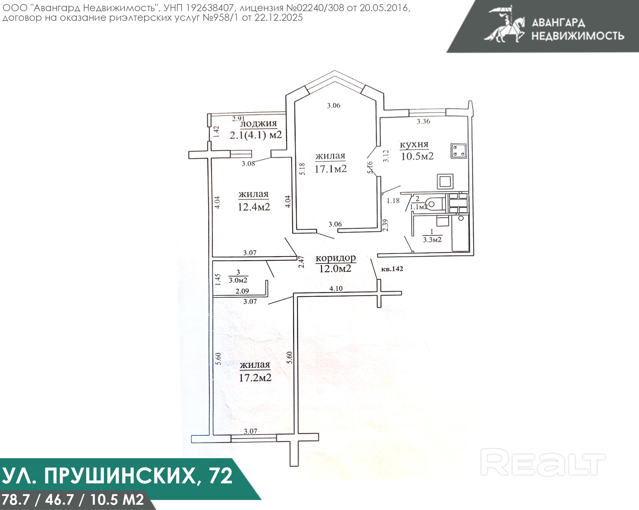 Купить 3-комнатную квартиру в Минске, ул. Прушинских, 72