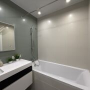 Квартира полностью готова к проживанию. Сделан отличный дизайнерский ремонт из дорогостоящих материалов. Установлены качественные окна ПВХ, металлическая дверь с улучшенной звукоизоляцией, итальянские межкомнатные двери Armadillo Потолки из экологически чистого гипсокартона. Сантехника производства Германии (Grohe), Турции (Vitra), Чехии (Alca), Испании (Roca). Бытовая техника Bosch, Zanussi, LG, Samsung. На кухне встроенная техника Bosch, сантехника Blanco, встроенный холодильник Whirlpool, посудомоечная машина Delonghi. Все жилые помещения оборудованы системами кондиционирования. Множество регулируемых точечных источников света. Установлен видеодомофон.