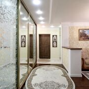 В квартире рациональная планировка: просторная гостиная, что позволит встречать много гостей у себя дома, две раздельные комнаты на разные стороны, два сан/узла (джакузи), две лоджии (выход на одну из лоджий на кухни, что является несомненным преимуществом и удобством в быту), окна выходят на обе стороны дома, есть вместительная гардеробная, а также в тамбуре большой шкаф-купе и отдельная кладовая на три семьи (закрывается на ключ), как дополнительное место для хранения бытовых вещей.