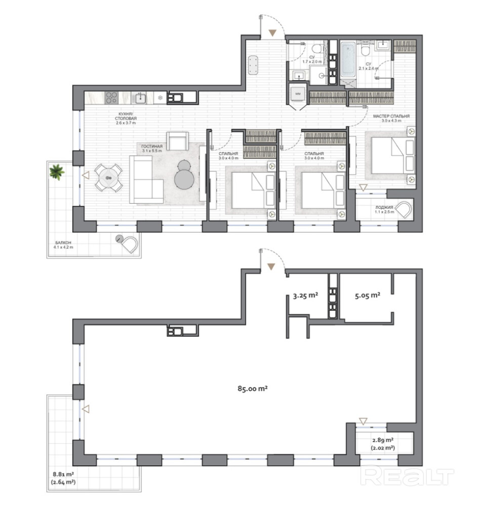 Видовая квартира в Северном Береге! 98 квадратов! В дополнение идет кладовка на 5,9м2