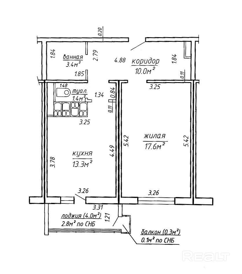 СНБ: 48.6 м.кв.