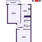 -Общая площадь - 42,45 кв.м., жилая - 27,44 кв.м. Планировка редкая и удачная: две изолированные комнаты, окна выходят на две стороны. Это означает естественное проветривание, больше света и ощущение простора. Комнаты не проходные - каждый член семьи получает своё личное пространство.
