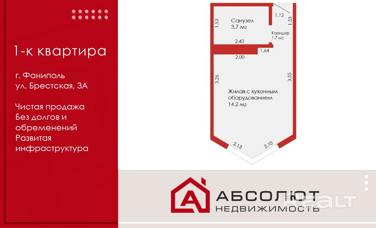 Продается уютная студия 19,6м2 (СНБ) с хорошим ремонтом! Идеальный вариант вблизи г. Минска