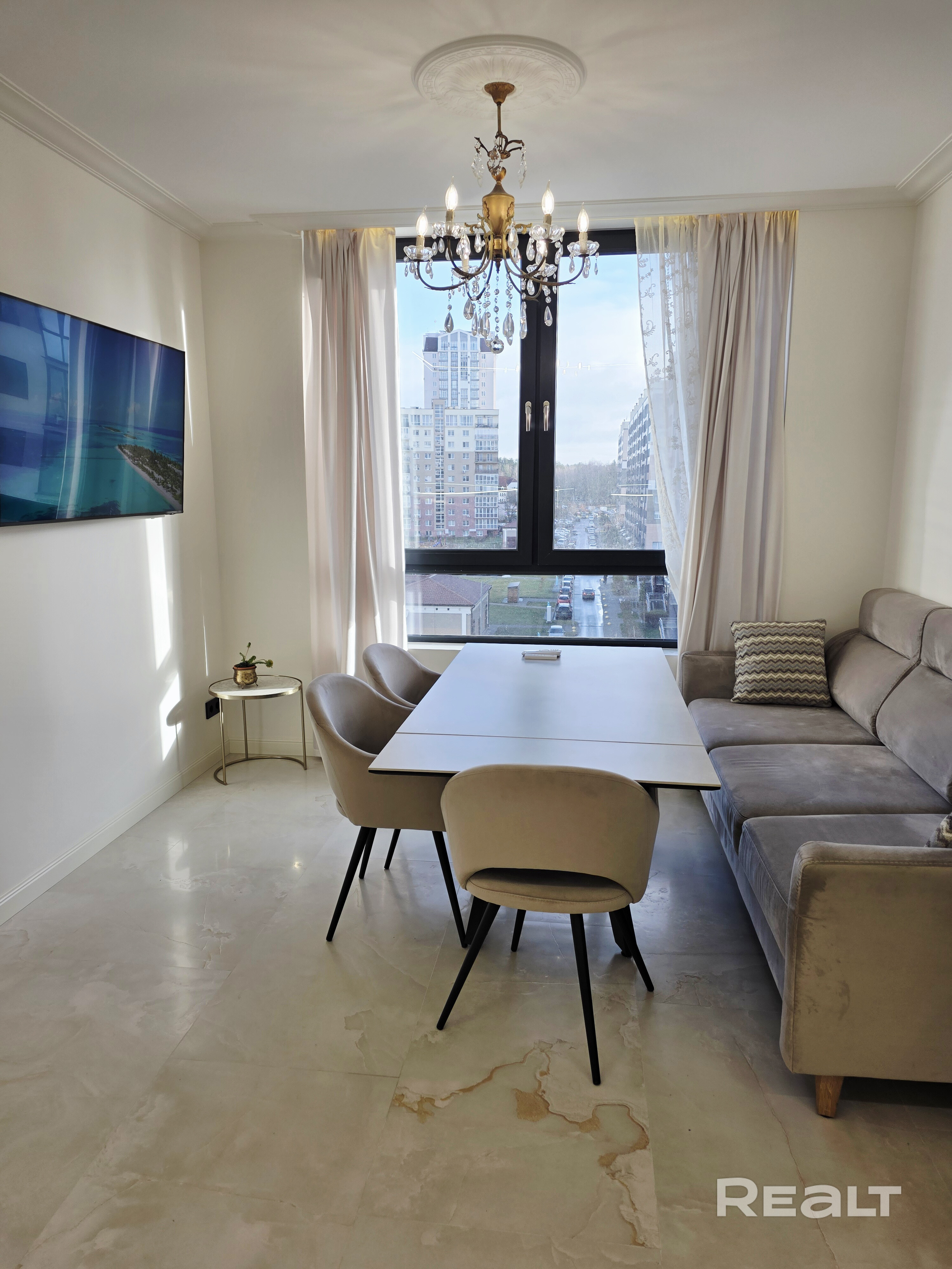 Красивая 3х комнатная квартира, 2 отдельные спальни с личными санузлами, гостевой санузел, встроенная мебель, постирочная, кабинет, дорогая отделка из импортных материалов, итальянская сантехника и электроприборы, лоджия.