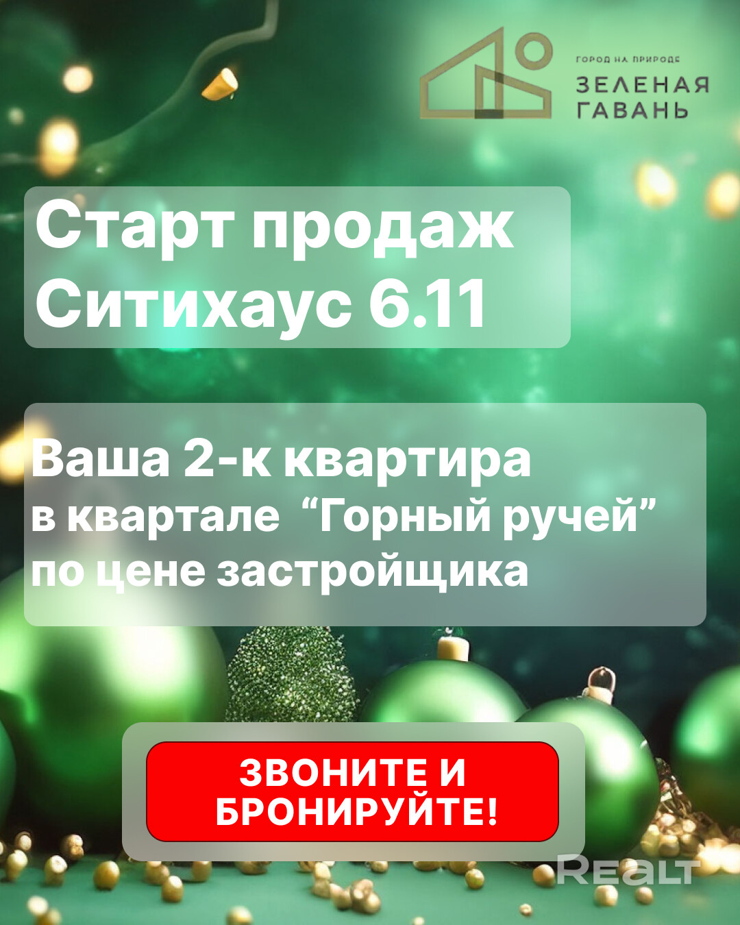 Старт продаж в ЖК "Зеленая Гавань"! Зимний вайб, зелёное окружение и своя 2-комнатная квартира!