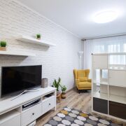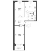 Кухня -10,2 м.кв, гостиная – 17,9 м.кв., изолированная комната – 13,9 м.кв., ванна – 3,1 м.кв., туалет – 1,1 м.кв., прихожая – 10,6 м.кв. с большим встроенным шкафом.