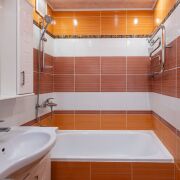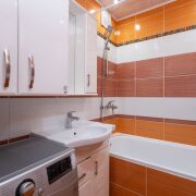На полу – ламинат, в ванной комнате плитка