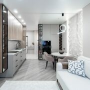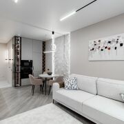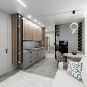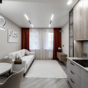 · Планировка: Свободная, формат евродвушки (объединённая гостиная-кухня и спальня).