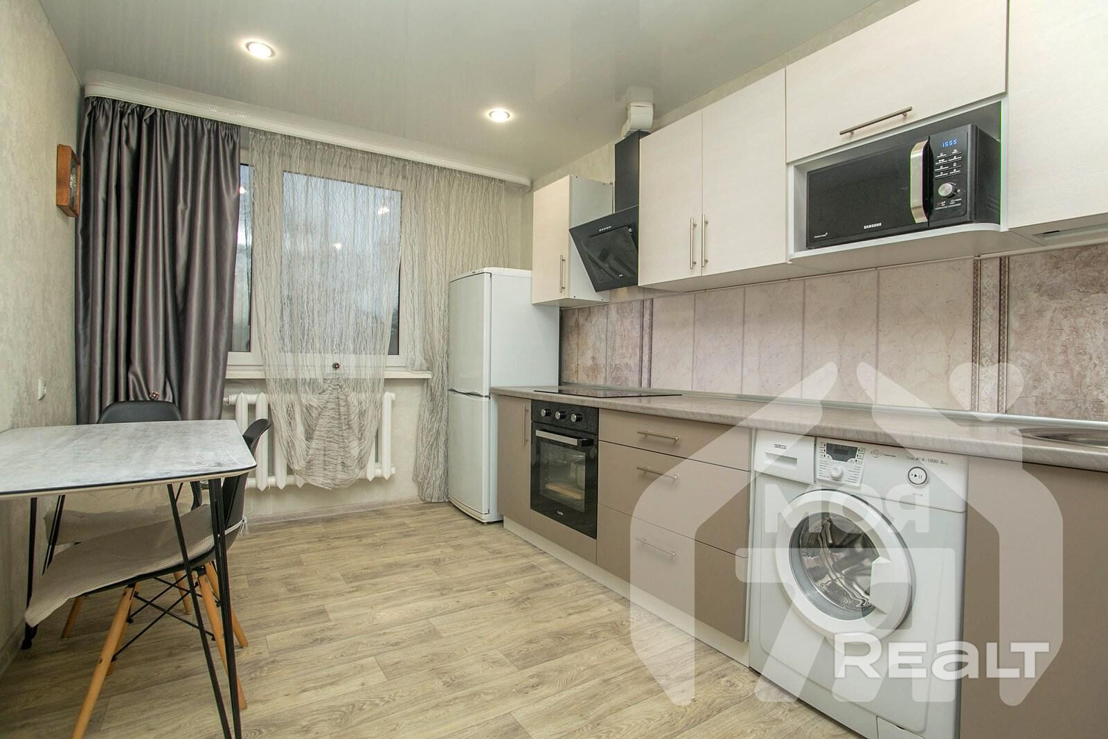 - Кухня укомплектована встроенной мебелью и техникой, которые входят в стоимость квартиры.