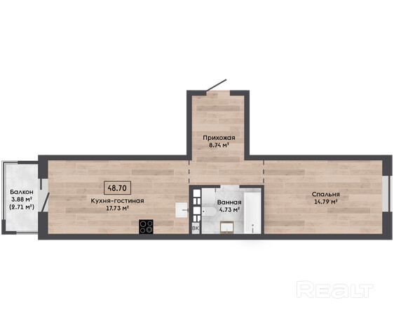 - Формат: евродвушка - просторная кухня-гостиная + комната;