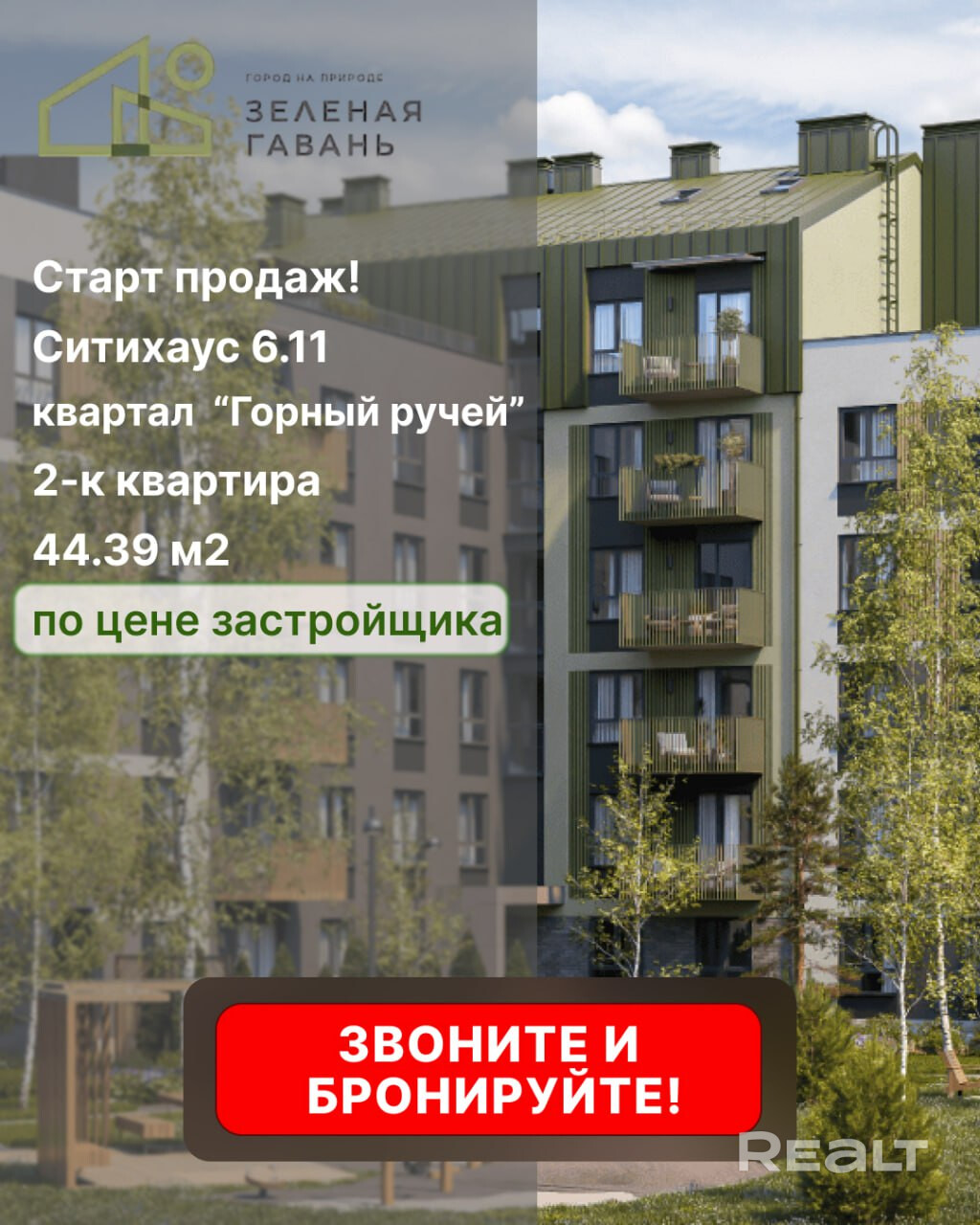 Старт продаж в ЖК "Зеленая Гавань"! Ваша идеальная 2-к квартира с кабинетом ждет вас! Звоните!