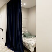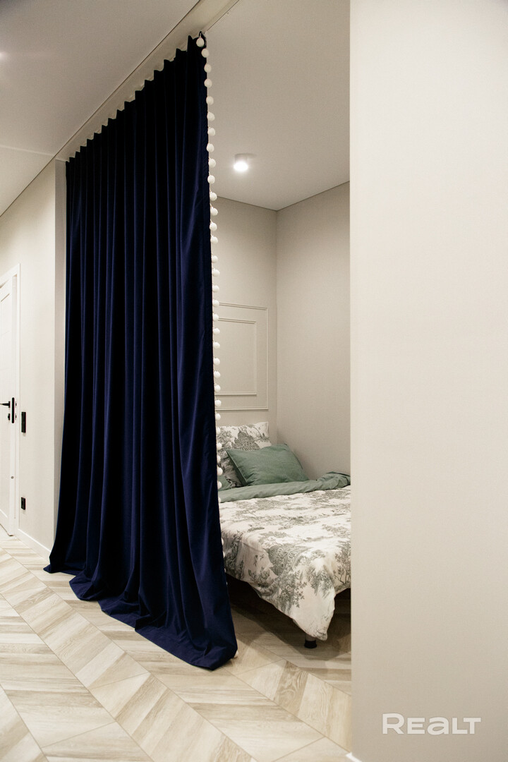 Удачная планировка с четким зонированием на уютную спальную зону и гостиную с удобным диваном.