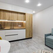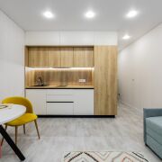• Жилая комната с кухонным оборудованием: кухня-студия дает простор и больше света.